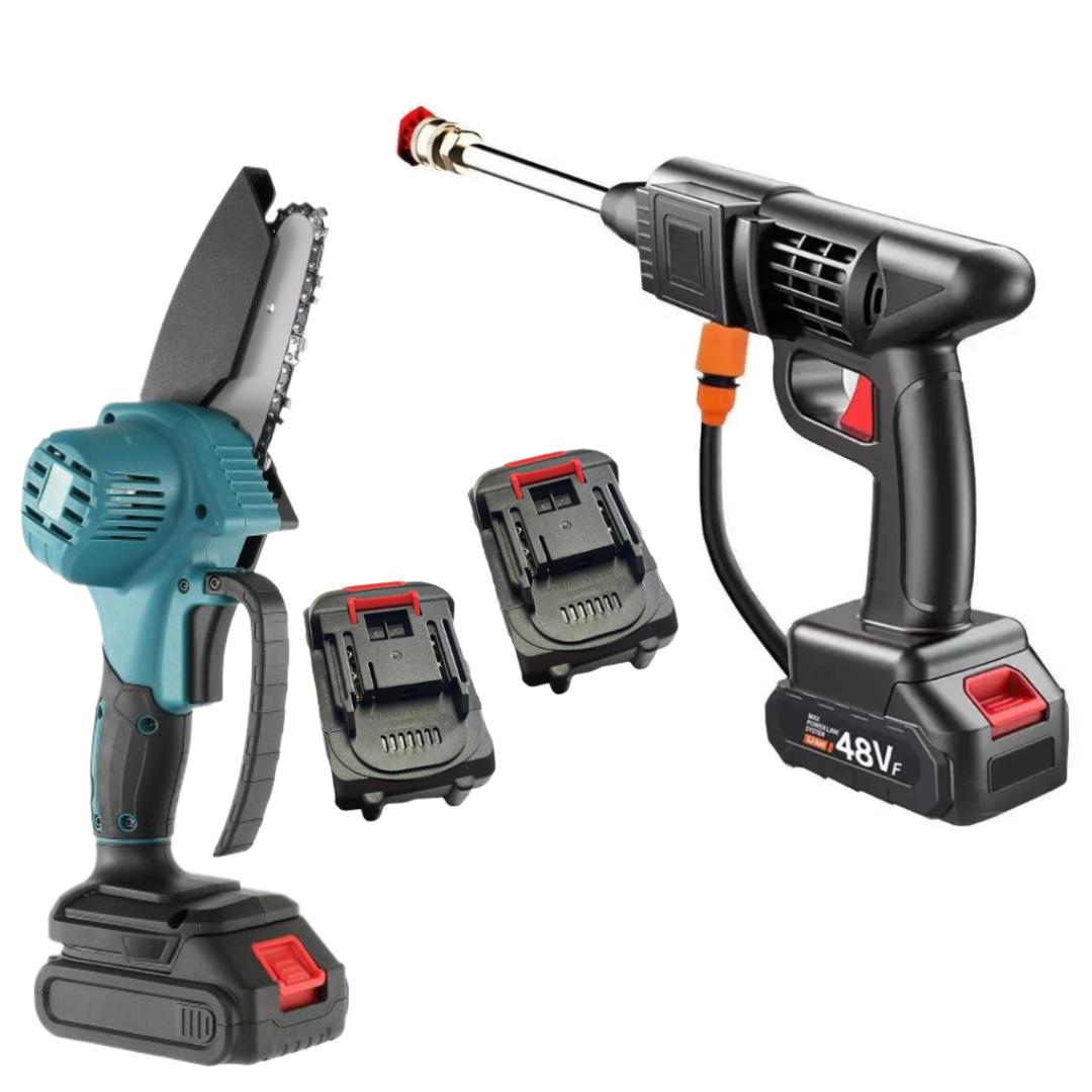 Pachet Mini Drujba Electrica Portabila 24V, 6 Inch + Aparat de Spalat cu Presiune Portabil 30 Bar cu 2 Acumulatori 48V Multifunctional