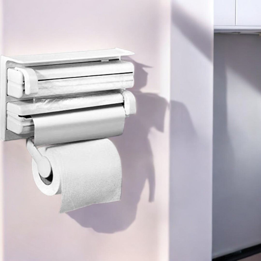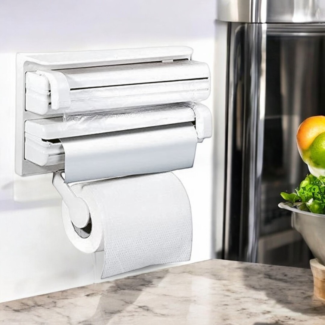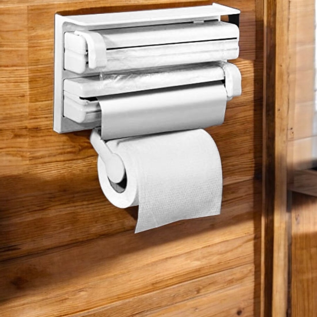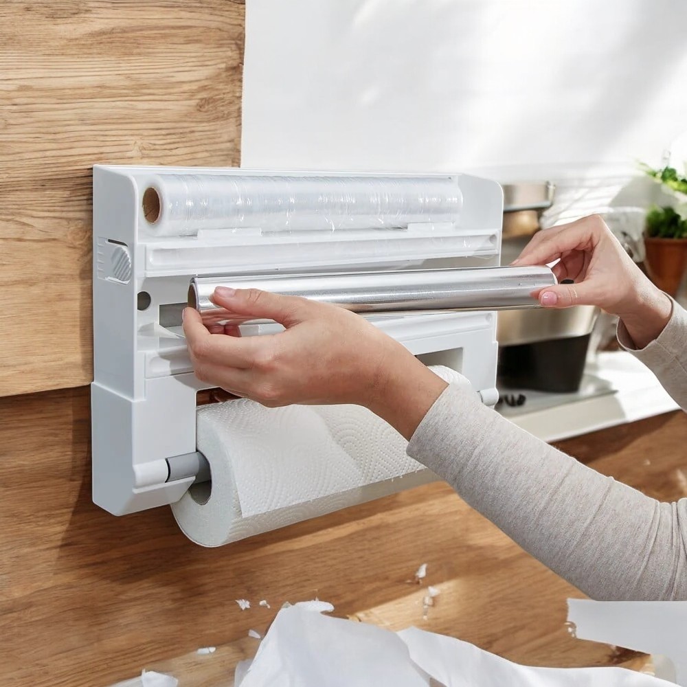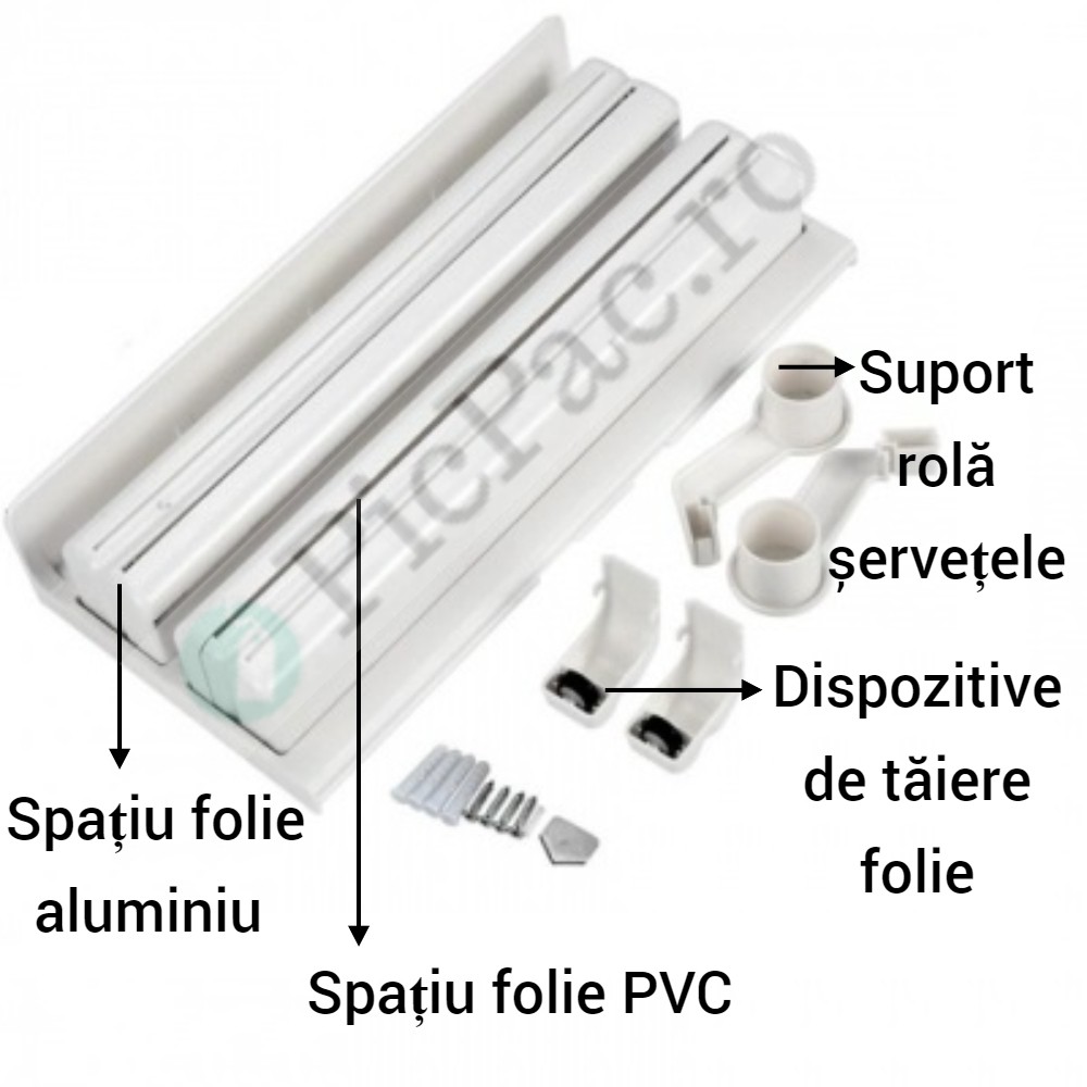 Funcții: Suport pentru folie alimentară, hârtie de aluminiu (sau de copt) și rola de prosop