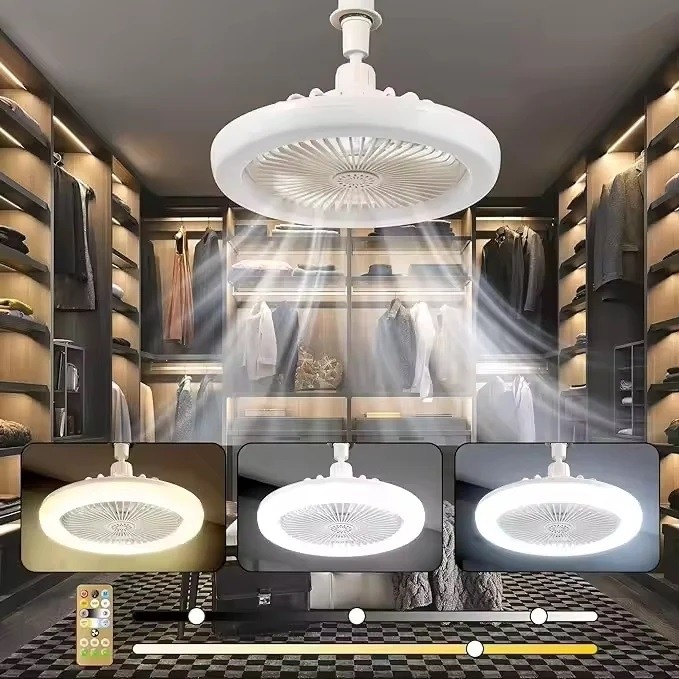 Lumină LED 30W: Ventilatorul este echipat cu o lumină LED E27 de 30W, cu opțiuni de alb rece, lumină caldă și neutru.